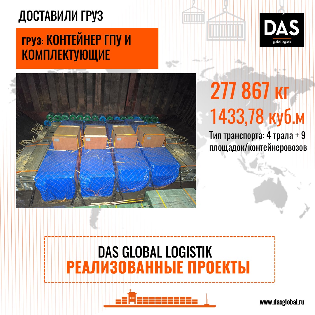 • Реализованные проекты: Грузоперевозка контейнера ГПУ и комплектующих